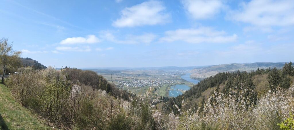 Unsere erste Reise 2025 ging nach Riol an die Mosel, auf den Campingplatz Triolago. Der Campingplatz liegt etwas Außerhalb von Riol an der Mosel am Ende eines engen Tales zwischen der A1 und der Mosel. Auf dem Parkplatz Mehringer Höhe, dem Letzten Parkplatz auf der A1 vor der Ausfahrt Longuich, gibt es eine schöne Aussicht auf das Tal mit Blick auf die Seen des Freizeitparks Triolago.